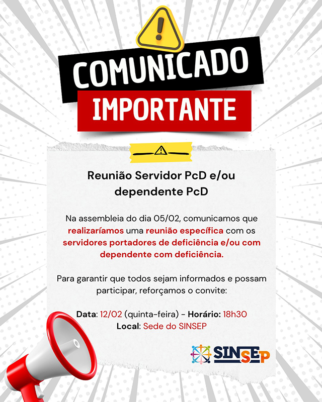 COMUNICADO IMPORTANTE 11 de fevereiro de 2026 Assessoria de Comunicação Notícias 0 Reunião Servidor PcD