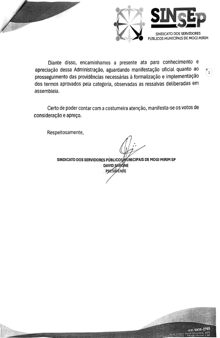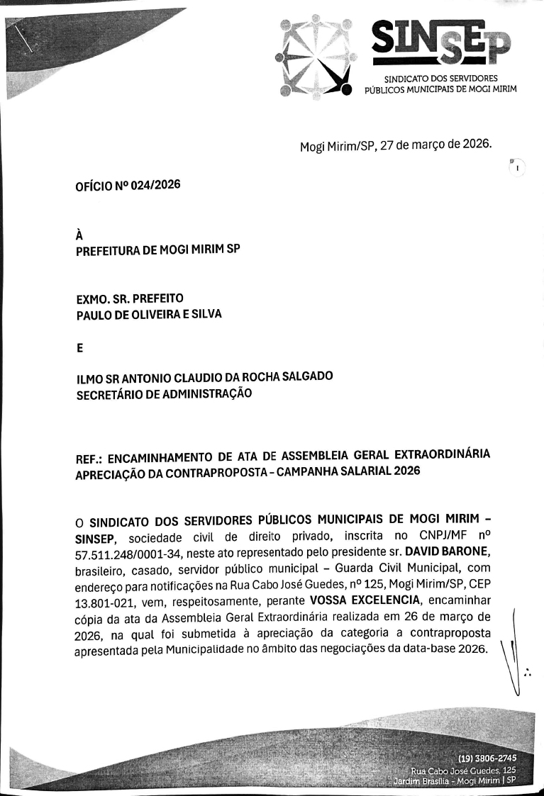Na noite de ontem aconteceu a segunda assembleia dos servidores municipais referente à negociação salarial de 2026. Foi relatada aos servidores presentes a proposta que a Administração municipal apresentou durante as negociações no TRT-15, no dia 18 de março último.